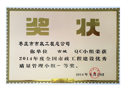 “古城”QC小組榮獲2014年度全國市政工程建設(shè)優(yōu)秀質(zhì)量管理小組一等獎